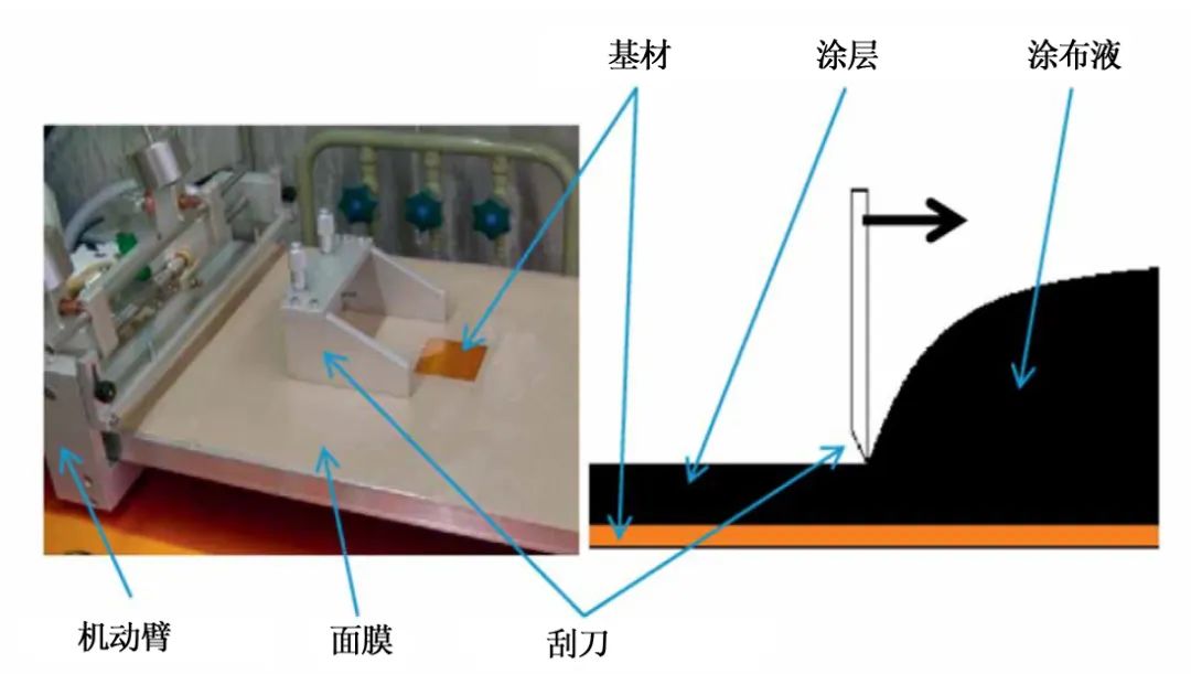 刮涂法操作簡單、工作效率高,可用于大規(guī)模膜電極制備,主要是使用刮刀將催化劑漿料刮涂在陰離子交換膜或氣體擴(kuò)散層上。Bender 等利用刮涂法將催化劑漿料刮涂至聚四氟乙烯(PTFE) 底膜上,并與噴涂法對(duì)比,認(rèn)為刮涂法更精確且速度更快。刮涂法雖然催化劑涂覆載量精度高、可重復(fù)性好,但仍存在一問題,如由于催化劑漿料直接涂覆在陰離子交換膜表面,陰離子交換膜易出現(xiàn)溶脹問題,影響電池的性能。